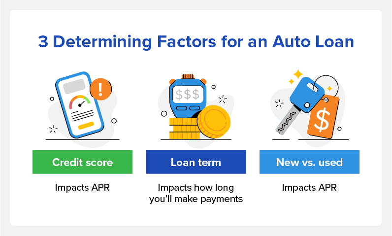 Credit score: This will influence the annual percentage rate (APR) of the loan. Higher FICO® credit scores between 661 and 850 can lower your auto loan interest rate.